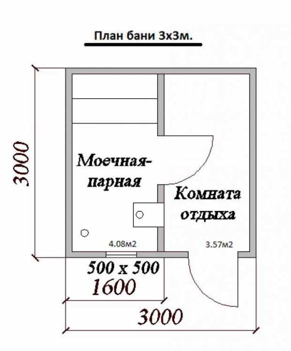 Габариты зависят от того, сколько человек будут одновременно париться. В основном для дачного варианта достаточно двух комнат. В одной — предбаннике, можно совместить раздевалку и место для отдыха, в другой – парную и моечную (прочитайте: «Какие оптимальные размеры бани и отдельных её помещений»).