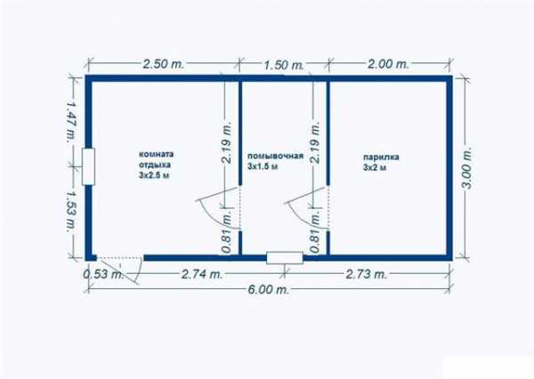 К сведению! Особенностью планировки такой мини бани является минимальное количество внутренних перегородок.