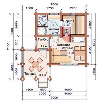 Проекты бань с комнатой отдыха