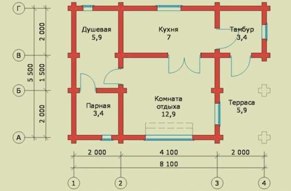 После выбора материала для постройки нужно определиться с размерами. Для компании из 5-6 площадь бани должна быть не менее 10 кв.метров. Размеры открытой веранды бани и непосредственно кухни-предбанника рассчитываются исходя из пожеланий хозяина.