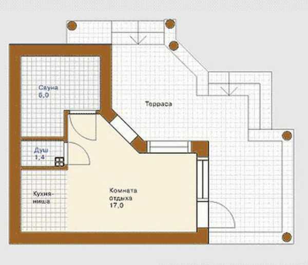 Как уже говорилось, проекты бань с комнатой отдыха и кухней могут быть разными – их выбор неограничен. Выбирая проект, нужно учитывать размеры участка, величину компании, которой вы планируете ходить в баню, а также размер бюджета.