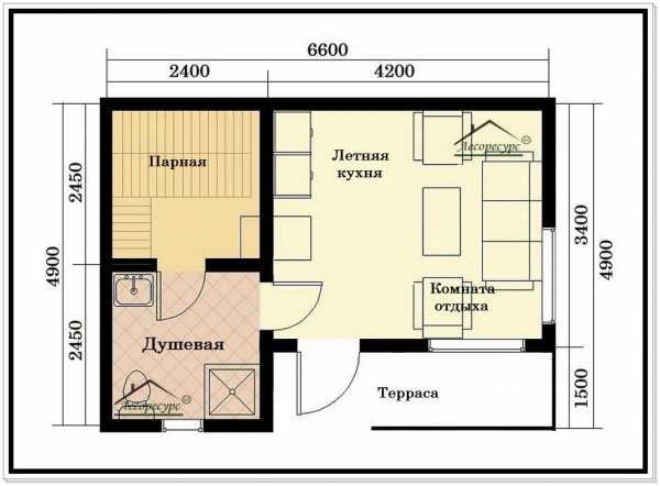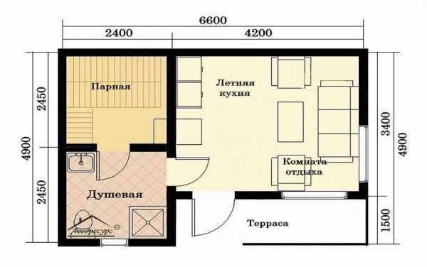 - Строительство небольшой паровой с кухней займет не более 20–25 квадратов.