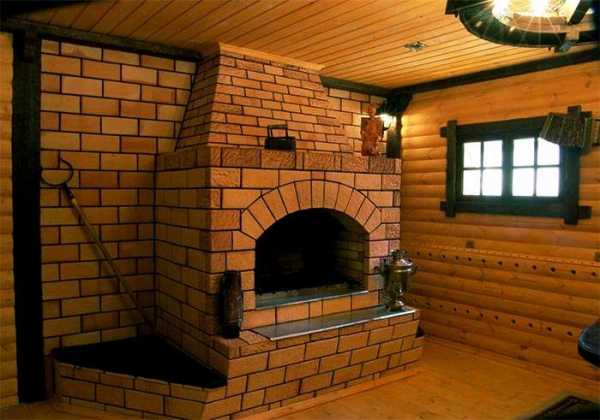 - Возведение внутри помещения общей печи, часть которой будет отвечать за приготовление пищи, другая же станет неотъемлемым элементом парилки.