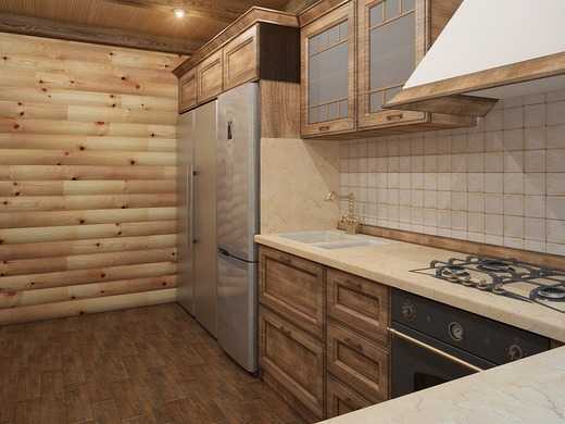 Более сложный вариант – это расположение кухни в отдельном помещении. В этом случае общая площадь постройки будет больше, зато все запахи, появляющиеся в процессе готовки, не будут попадать в комнату отдыха.