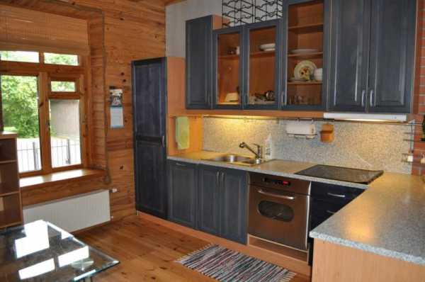 - Кухня, помимо своей основной функции выполняет роль предбанника, а кухонная печь одновременно служит и для обогрева парной;