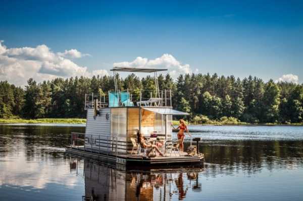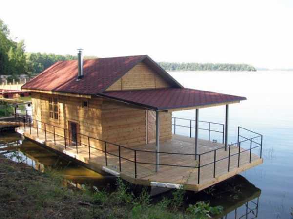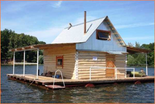 Баня на воде – вариант для тех, у кого небольшой участок. Бывает, что вся земля занята, к примеру, домом, садом, огородом и т. д., а места для бани попросту нет. Но это не значит, что вам придется отказать себе в удовольствии владеть собственной баней, или вы будете вынуждены ютиться в маленькой бане. Плавучая постройка может быть любых размеров, а т. к. она находится на воде, драгоценные квадратные метры участка баня не занимает.