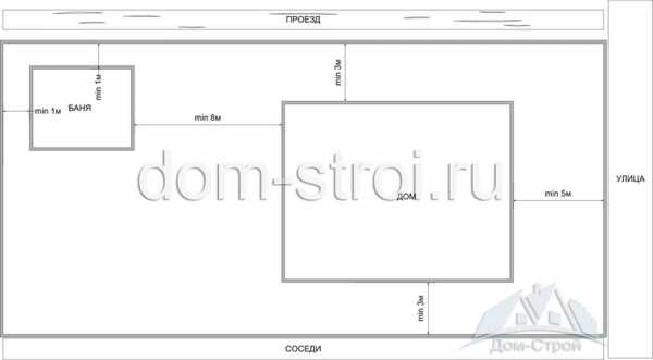Важно: указанные нормы действуют и в отношении построек, расположенных на смежных участках. Таким образом, расстояние от бани на вашем участке до построек, расположенных на соседнем участке, должно составлять не менее тех же 8 метров.