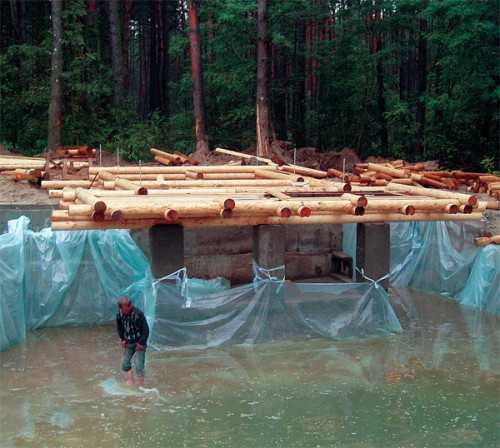 - Высокий уровень грунтовых вод. Стоимость устройства фундамента на «болотистых» участках, насыщенных влагой из-за близости к водоемам, увеличивается в несколько раз. Даже для простейшего строения, такого, как баня, придется сооружать свайный фундамент, что влечет за собой дополнительные расходы. Если же сэкономить на основании, рано или поздно постройка «поплывет» вместе с грунтом.
