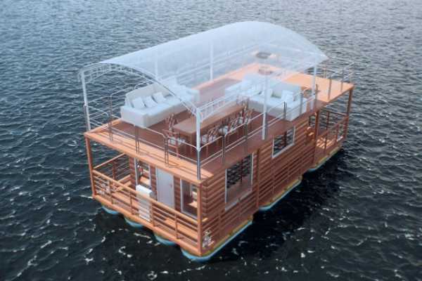 Главная сложность в строительстве плавучей бани – это удержать ее на воде. Для этого постройку возводят на специальном понтоне. Важно, чтобы постройка удержалась на воде, даже если вся компания отдыхающих сгруппируется в одной части бани.