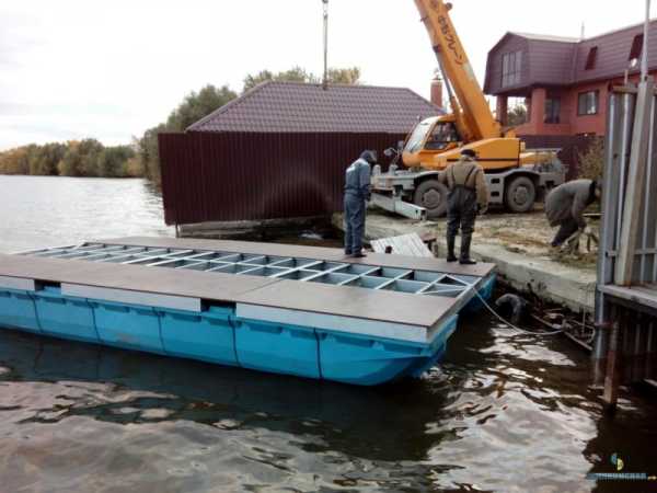 После того, как выбран тип понтона, можно переходить к его установке. Пластиковый понтон нужно собирать строго по инструкции. Если будет использован деревянный понтон, то под него можно установить в качестве плавучих элементов металлические бочки, трубы большого диаметра с тонкими стенками. Понтон нужно прикрепить к берегу или пирсу.