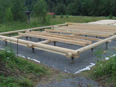 - Затем устанавливаются напольные лаги, выполняющие роль чернового пола.