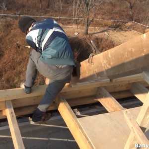 - После того, как имеется расположение печи в бане, можно начинать возводить кровлю строения.