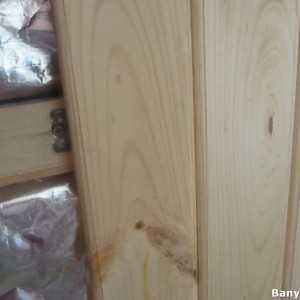 Парилку если баня выполнена из хвойного бруса необходимо отделать фольгоизолью и обшить липовой или осиновой вагонкой. Важно между отделкой и основной стеной оставить вентилируемый зазор, так конденсат от влажного пара не будет скапливаться и материал прослужит дольше.