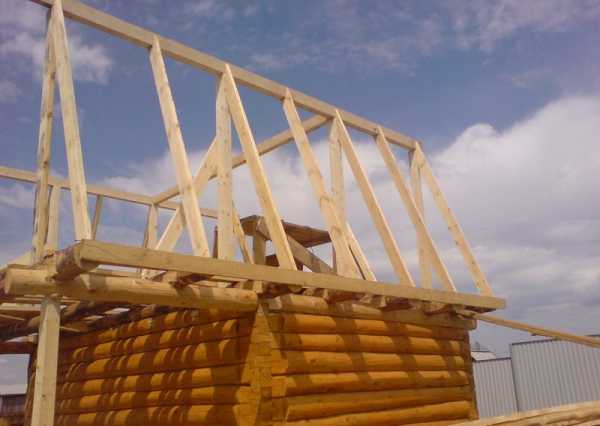 После того как стены будут полностью готовы, приступают к устройству крыши. Вначале собирают в единую конструкцию основания крыши и устанавливают там стропила. Затем переходят к устройству обрешетки. Если дымоход будет выходить через крышу, то под него делают специальные отверстия.