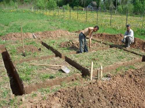 - Для столбиков и ленточного основания делается разметка и снимается верхний слой почвы.