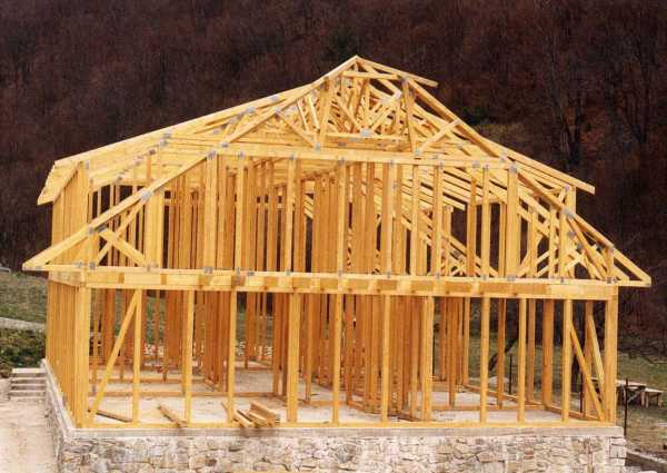 На следующем этапе к верхней обвязке уголками или врубкой фиксируют балки перекрытия. Далее на анкера с дополнительным креплением скобами устанавливают стропильные ноги.