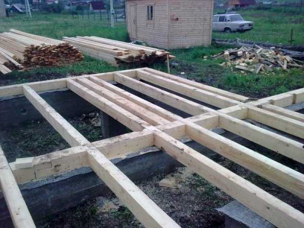 Первый шаг. Уложите деревянные балки поверх верхней обвязки стен.