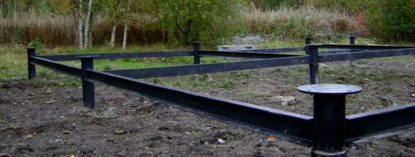 Грамотно подобрав место, выкапываем траншею под заливку ленточного основания. Далее создаём подушку из гравия или песка, и подготавливаем армировочный материал. В уже готовую, армированную траншею, монтируем опалубку не белее 20-30 см. над поверхностью почвы и приступаем к заливке бетона, которой даем время в течение нескольких дней, до полного застывания. Не забывайте использовать гидроизоляцию — рубероид, либо пленка, в зависимости разновидности строения.
