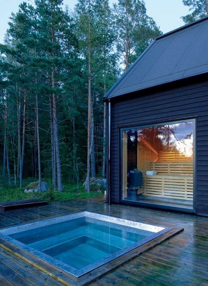 Те, кто имеет участок рядом с рекой или озером, могут окунуться в водоеме. Если же поблизости нет ни одного водоема, то бассейн станет хорошим альтернативным вариантом.