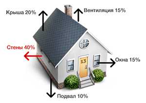 В наружных стенах здания, разделяющих области с разными температурно-влажностными условиями, происходят процессы выделения и конденсации влаги. Тепло проникает из областей с более высокой температурой в области с низкой температурой. Иными словами, зимой тепло «уходит» из нагретого помещения наружу, а летом возникает приток тепла внутрь здания. В небольших домах (4-5 комнат) порядка 40% от всех теплопотерь происходит через внешние стены здания. Дополнительные потери тепла происходят через вентиляцию (15%), кровлю (20%), окна и двери (15%) и конструкцию пола и фундаментов (10%).