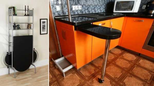 Небольшие выдвижные или складные поверхности будут просто находкой для миниатюрных кухонь