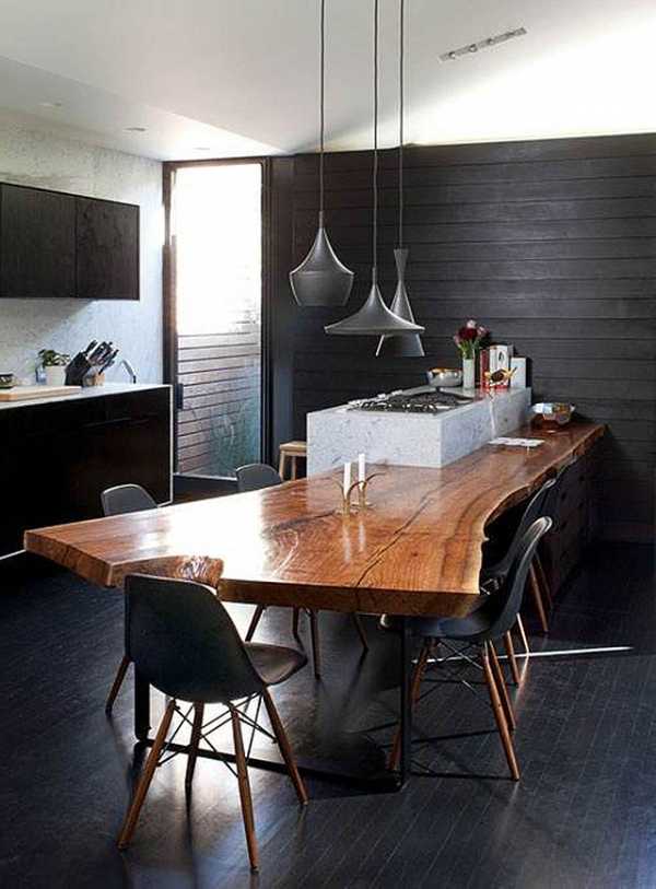 Со временем стойки вновь отделились от кухни, чтобы трансформироваться в кухонный остров — это высокий стол, по сути, барная стойка, в которую монтируют шкафы, варочные панели, духовки, раковины. Удобство такого острова в том, что это и рабочая кухонная зона, и большой обеденный стол, и широкое поле для раскатывания теста, лепки домашних пельменей, готовки всей семьей или чего-то другого, столь же масштабного.