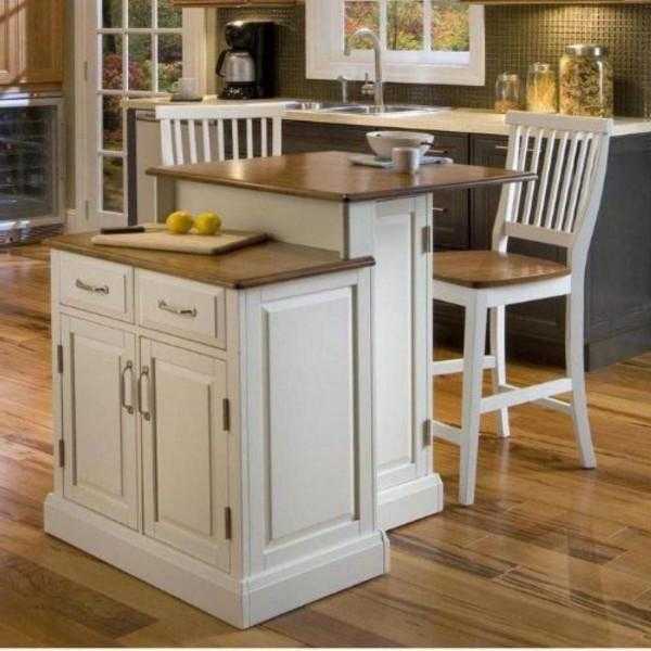 Оптимальная высота такой стойки равна 0,9 м. В этом случае барный «отросток» можно будет применять и в качестве разделочного стола. По сути, данная модель представляет собой стандартную мини-стойку, обладающую достаточным количеством функциональных и эстетических качеств, чтобы разместиться на любимой кухне-дюймовочке. Для более комфортных и неторопливых трапез, а также быстрой готовки – лучше всего подбирать стулья для бара, высота которых не превышает 0,6 м.