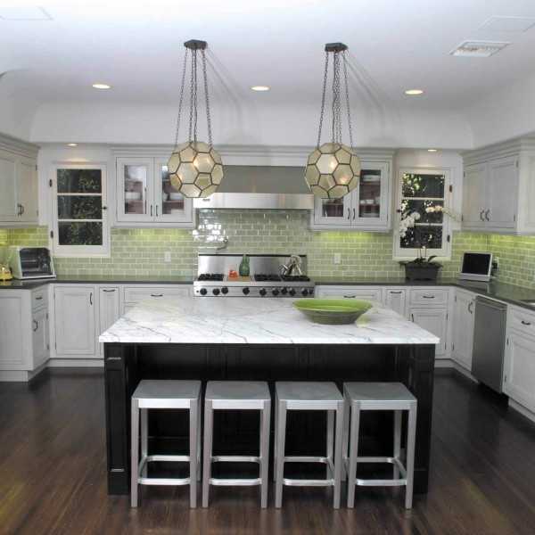 Остров — это отдельно стоящая барная стойка, которая вмещает в себя кухонные шкафы, встроенную бытовую технику, мойку. Это, по сути, отдельно стоящая часть кухонного гарнитура, которая используется и как рабочий, и как обеденный стол.