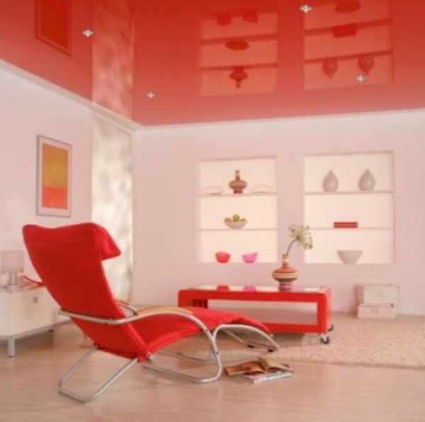 Нетипичное решение в оформлении перекрытия не всегда должно иметь сложную форму. Достаточно выбрать нетрадиционную окраску полотна и ваша комната уже станет намного оригинальнее. Если же окраска поверхности перекрытия дополняется не самой типичной отделкой стен и предметами обстановки, то оформление станет просто уникальным.