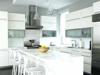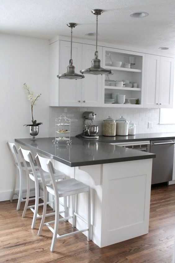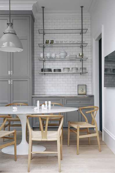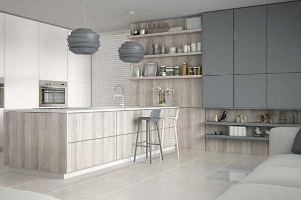 Серые стены и белая мебель на кухне