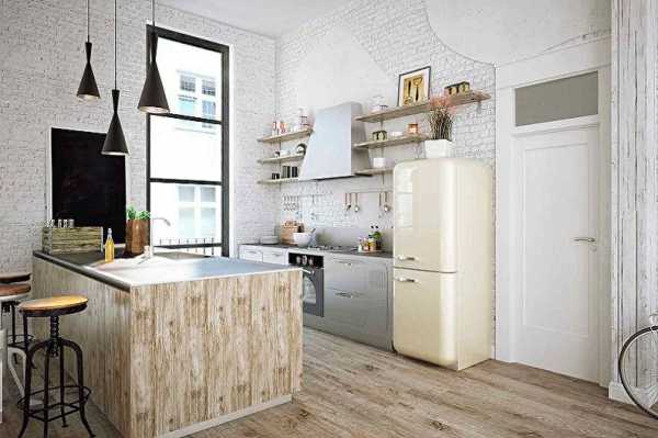 Оформление кухни в стиле Лофт в светлых цветах имеет немало достоинств: