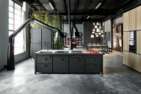 Черная кухня в стиле лофт
