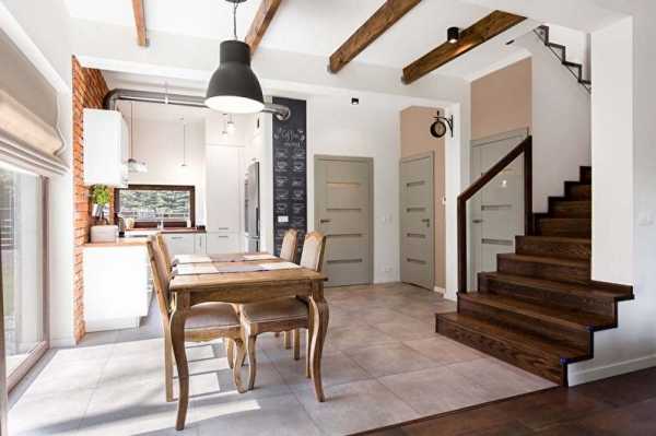 особенности дизайна квартир в этом стиле, фото с примерами светлых интерьеров спален, кухонь и гостиных, какой цвет дерева и кирпича выбрать для отделки