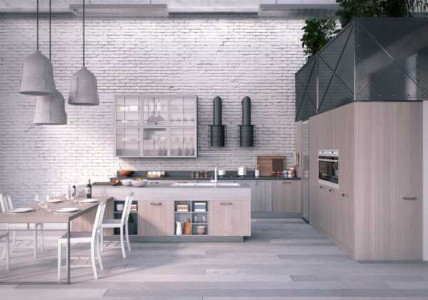 Белая кухня в стиле лофт