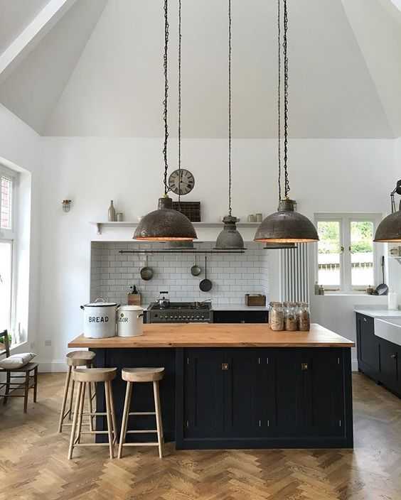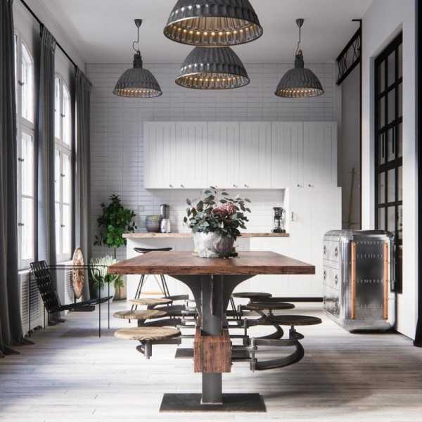 Осветительные приборы важны. Попробуйте установить кухонный остров или включить обеденный стол в середине кухни. Всегда помните, чтобы выбрать правильную длину подвесных светильников – они не должны быть слишком низкими. Осветительные приборы важны Тема кухни должна всегда идеально сочетаться с другими участками лофт-дизайна, даже если цвет помещений будет отличаться.