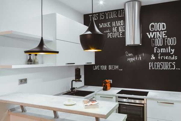 - Дизайн кухни не должен быть слишком ярким и вызывающим. Сочные тона в большом количестве утомляют. Светлая же гамма вызывает только приятные эмоции и является универсальной. Белым часто разбавляют другие тона и расставляют акценты.