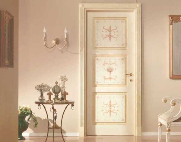 В интерьере, принадлежащем к стилю прованс и выполненном в светлых и лавандовых тонах, белые створки будут выглядеть более гармонично. Однако деревенское убранство имеет несколько разновидностей, все они относятся к стилю кантри. Для квартир с дизайном в деревенском стиле дверь может быть украшена: