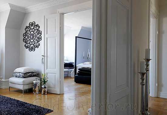 Белые двери характерны для скандинавских интерьеров, где светлая отделка «делает» внешний вид всей комнаты. Если в просторных пенатах шведы могут позволить себе устанавливать , то для маленьких комнат вердикт вынесен заранее. Светлый пол, белые стены, окна, потолок и дверные проемы. Таким образом, обстановка не выглядит заключенной в строгую рамку, взгляд рассеивается, и комнаты визуально выглядят просторнее.