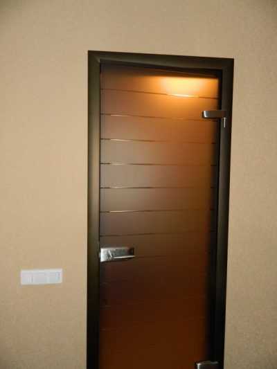Монтаж коробки в проем комнаты- Когда коробка уже готова и стоит на своем месте, приступают к монтажу створки из темного стекла. Делают это в зависимости от выбранного дизайна полотна и конструкции.