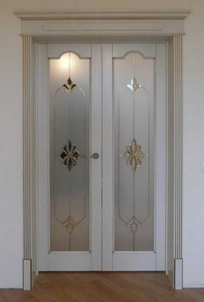 Если вы выбрали добротные массивные створки из выбеленного дуба, то лучше всего установить их в комнатах, отделка которых выполнена в классическом стиле. Хорошо, если они будут оформлены декоративной резьбой, патиной или объемными вставками.