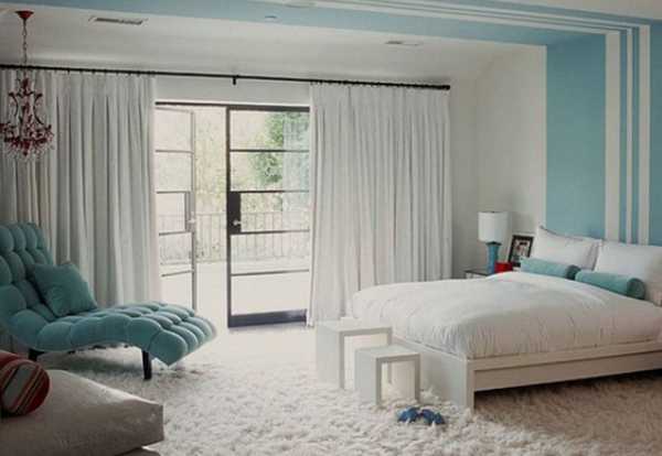 Белые шторы для спальни лучше всего подбирать приглушенных серо бежевых и сине молочных тонов