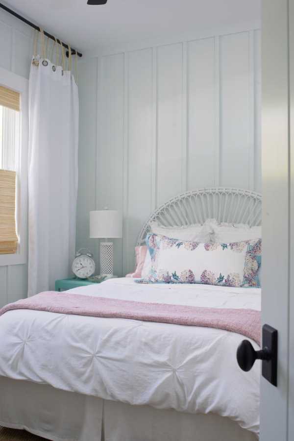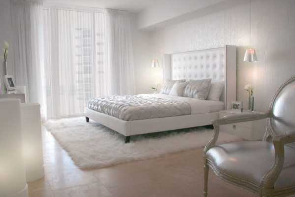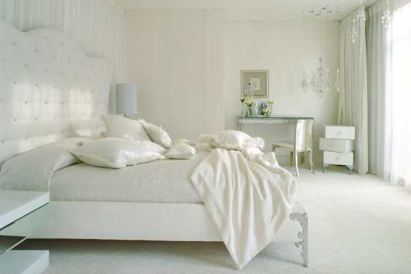 Благодаря светлым тонам спальня выглядит легкой и воздушной. Если же использовать белые простыни, в сочетании со светлыми вариантами штор они помогут привнести в интерьер сказочной очаровательности. Большое количество подушек вместе с перинами позволят создать небесное чувство, даже в некоторой степени, заоблачное. Здесь следует использовать варианты матовых тканей, например, софта, сатина. При помощи вуали/органзы помещение будет выглядеть ангельским.