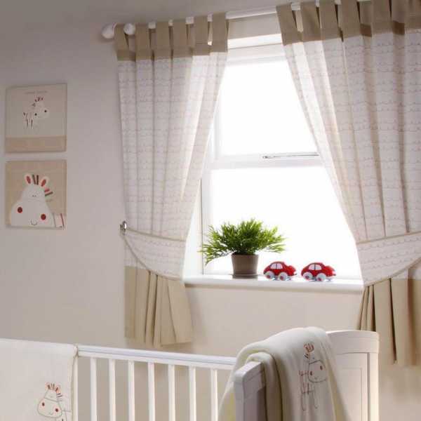 К оформлению территории, где обитают самые маленькие члены семьи нужно подходить с особой ответственностью, ведь именно с нее малыш начинает открывать для себя огромный мир. Занавески в детской должны быть эстетичны, приятны для глаз и гипоаллергенные. Предпочтение следует отдавать натуральным льняным и хлопковым тканям с матовой поверхностью, спокойных, не «режущих» глаз оттенков, слегка разбавленных любым тоном пастельной палитры. В целях безопасности закреплять их нужно на паты, люверсы, кулиску, но не на прищепки и крючки.