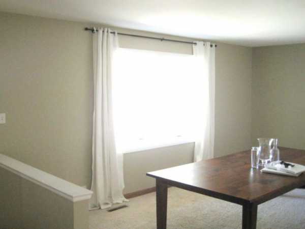 Не малую роль играет карниз, повесьте его выше и сделайте невидимым, так ваша комната будет визуально выше. Если все же карниз будет темного цвета, то он обязательно должен сочетаться с другими предметами интерьера.