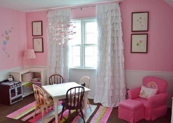 Каскадные белые шторы в детскую для маленькой принцессы напоминают наряд доброй феи и создают сказочную атмосферуОформляя окна в детской, не забудьте позаботиться о прочном карнизе и крепления, чтобы во время игр малыш не смог обрушить на себя конструкцию. Острых держателей и мелких украшений в детской тоже быть не должно.