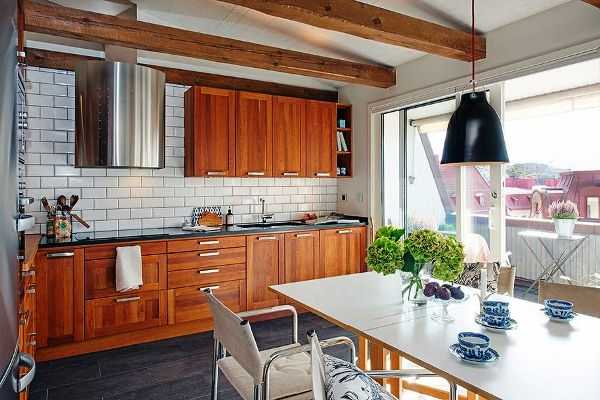 Подобная отделка на кухне может применяться для украшения мебели, облицовки бара, украшения фасадов и прочего. Если хорошо скомбинировать разные материалы, кухню можно сделать не только красивой, но и практичной.