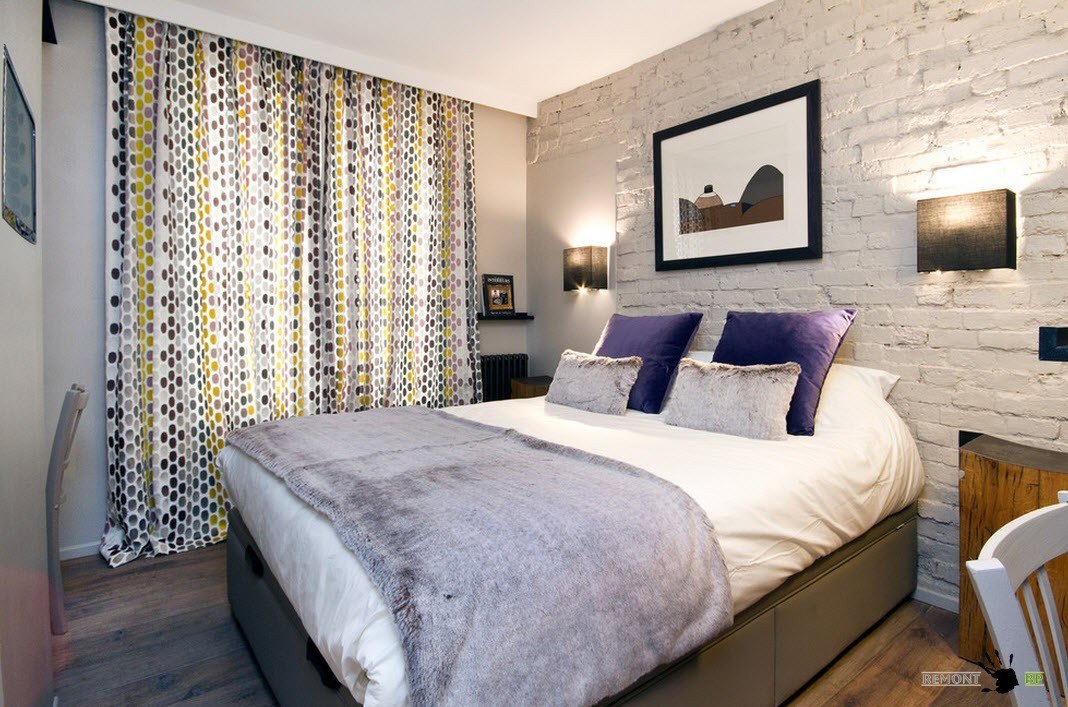 - Спальня с белой кирпичной стеной. Выбор стиля интерьера