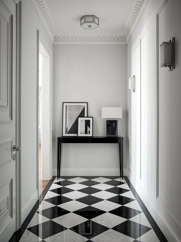 Черно белая плитка в коридоре