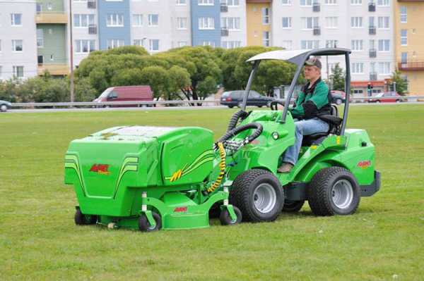 Для обработки газона, соизмеримого по площади с футбольным полем, целесообразно приобрести райдер или садовый трактор.