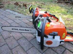 - Бензопила Stihl M. S. 361. Ненамного уступают пилы марки Stihl, в этой пиле также большое количество инноваций, например, рабочая смесь в цилиндре, 4 канала завихрения, присутствует функция QuickStop, есть подогрев карбюратора и система смазки Ematic. Мощность этой бензопилы — 3400 Вт. Рабочая длина шины — 45 см (есть возможность увеличить), весит 5.6 кг.